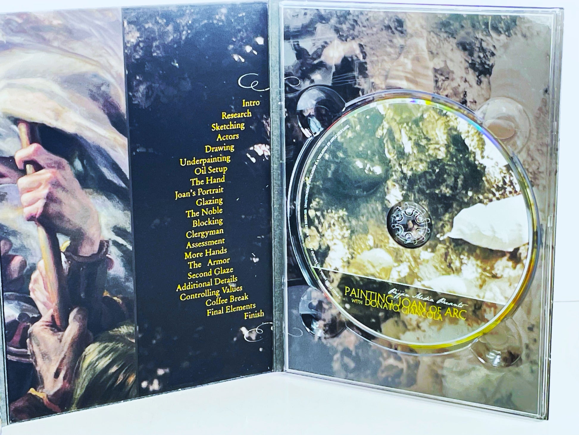 Step-by-step narrative instruction for the painting “Joan of Arc” by Donato Giancola, an American artist specializing in narrative realism with science fiction and fantasy content, including images for Tolkien's Middle-earth. This appears to be a scarce DVD.